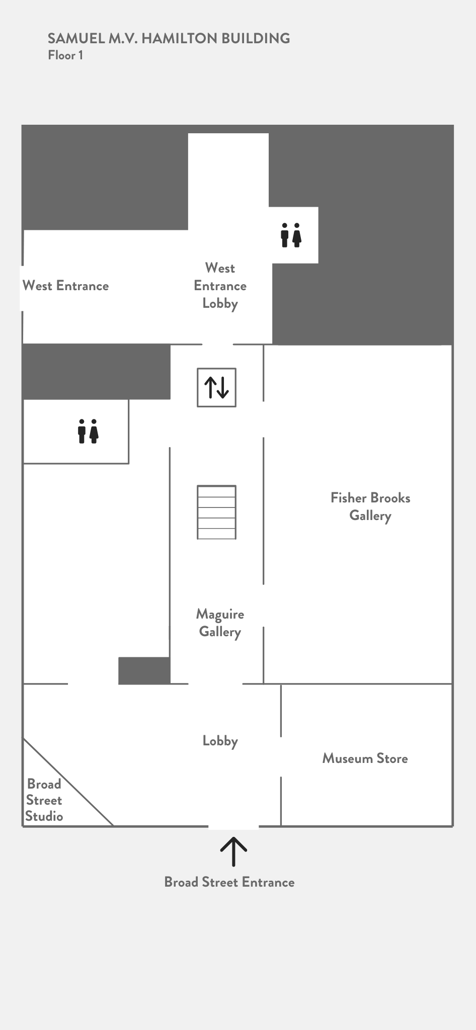 Elevators are available on all levels for accessibility. Restrooms are located near gallery entrances. For assistance, visit the Information Desk in the West Lobby.