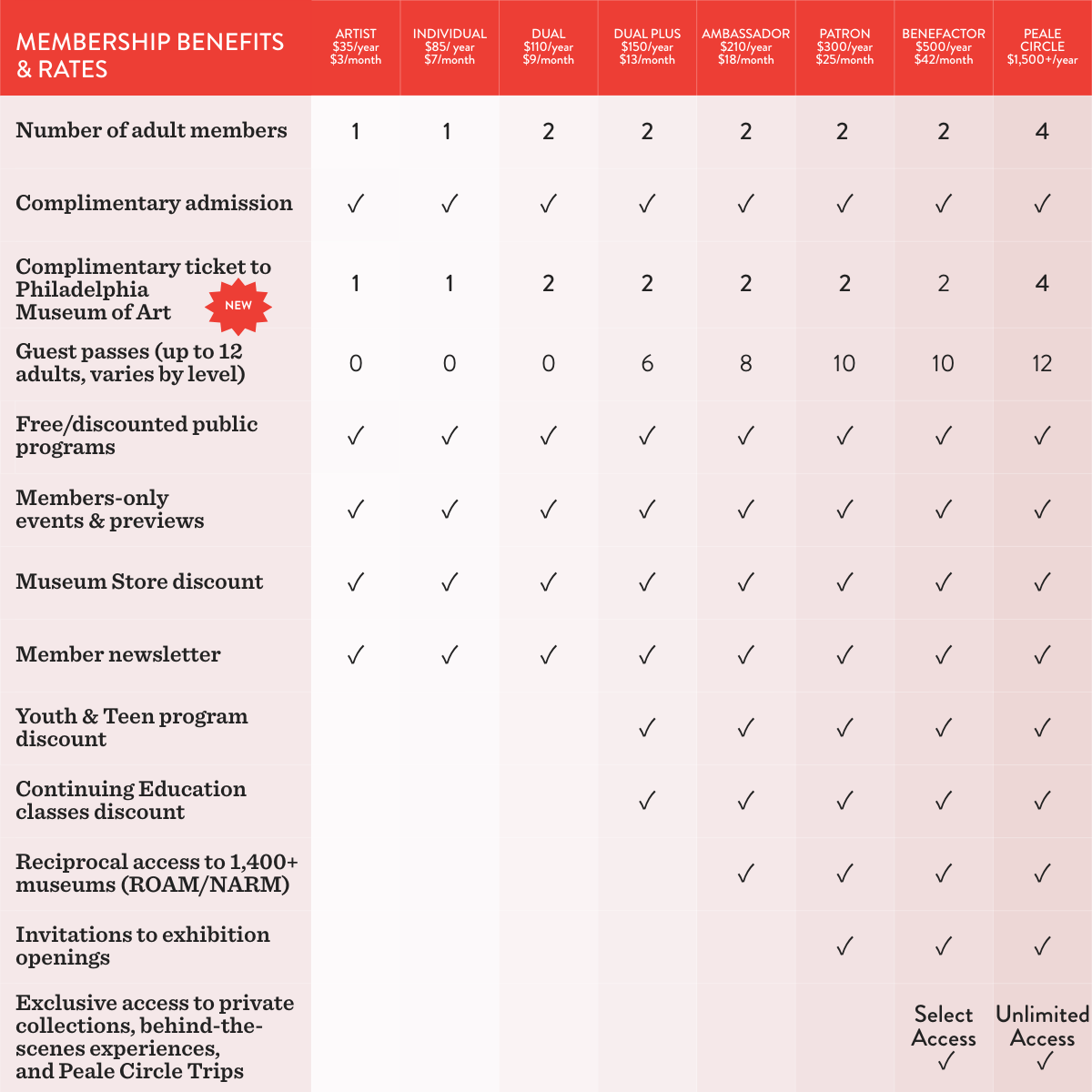Please note: Reciprocal membership to 1,400+ museums through ROAM and NARM are now available starting at the Ambassador level.