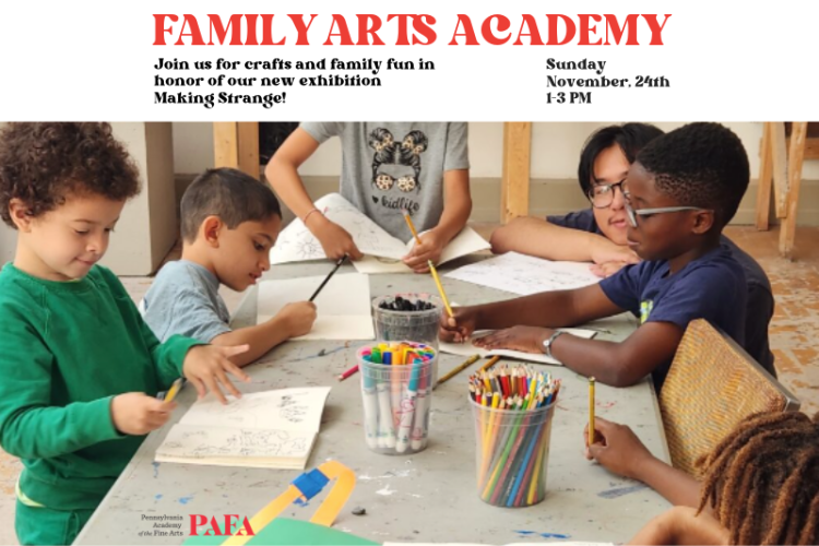 Bring the whole family to PAFA for free on select Sunday afternoons from 1-3 p.m. to meet local artists, learn new skills, and make an exciting art project. Registration is recommended. PAFA's Family Arts Academy workshops are free programs that aim to strengthen initiatives in family development and art education.