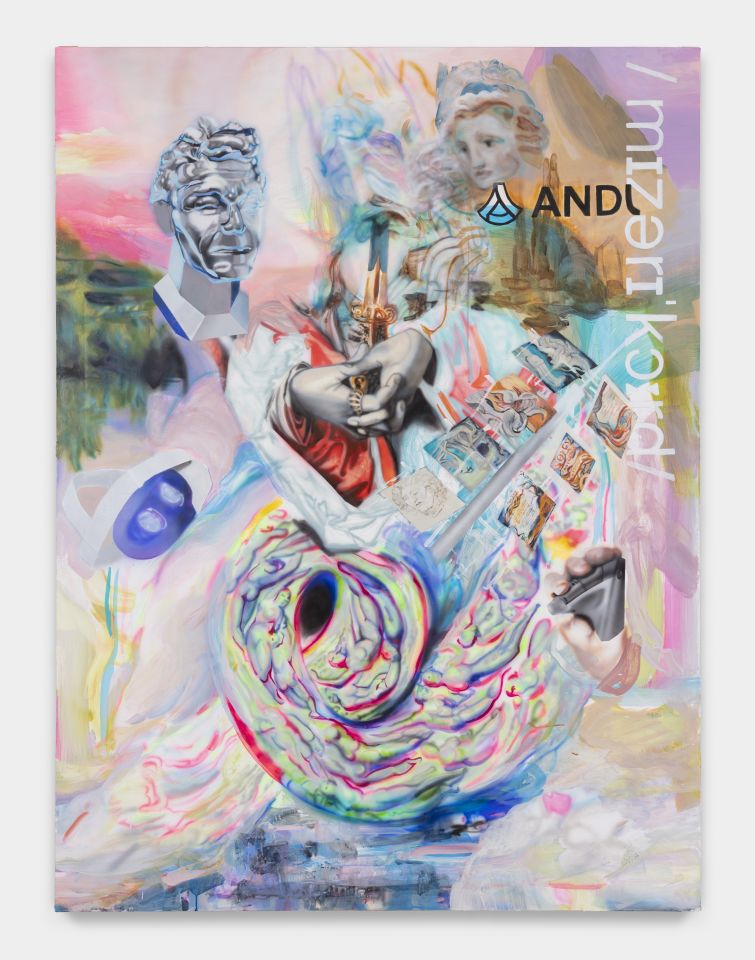 Image information: The Opal Sandcastle Ghost Bites the Misericorde, 2022, Oil and acrylic on canvas, 72 x 54 inches