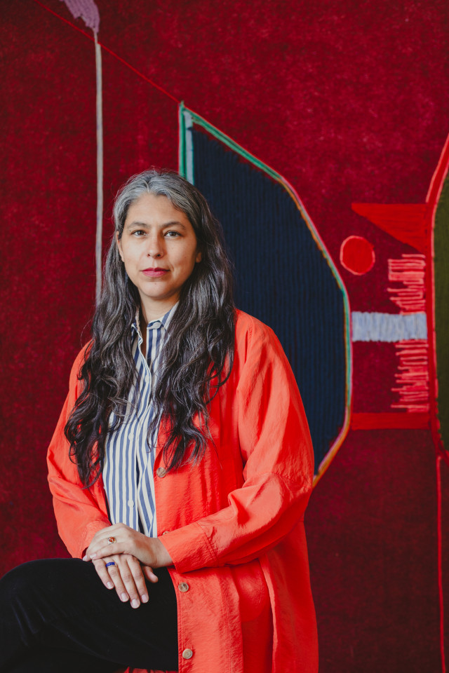 Baker draws on basketmaking and canoe construction techniques, gardening design, and quilt stitching—traditions practiced in her family across both her Indigenous and German heritages. By grounding her work in the knowledge and functional practices she knows, Baker creates a form of abstraction that is connected and universal, rather than constructed and idealized. Her work is also shaped by the reverence she was taught to exercise for the environment, and the responsibilities often expected of women toward land and nature.
