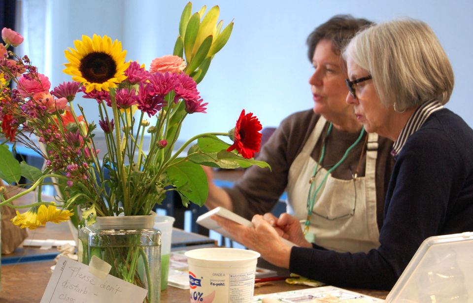 In this one-week, full day intensive course, students will explore flowers and other natural forms, beginning with line and value drawing and progressing to full-color rendering in watercolor and mixed media. Topics will include sighting techniques, line quality, tone and value, creation of depth, composition, texture, and basic color. All levels welcome. Tuition includes a $10 materials fee for floral subjects, provided.