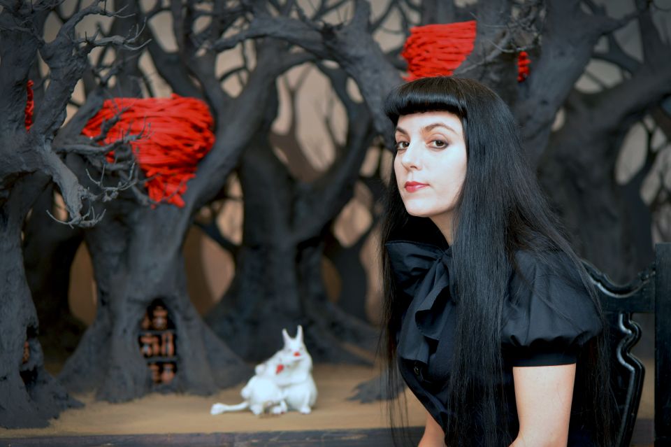 2019 Guggenheim Fellow Christiane Cegavske grew up among the dark firs and gnarly oaks of Oregon. The woodland environment left a permanent mark upon her creative work, in which her anthropomorphic creatures live out their dramas in natural settings. Cegavske’s work blurs the boundaries between fine art and animation and her gallery art supports and enhances her films, using dreamlike motifs in different mediums. Her finely crafted stop-motion animation is comparable only to a handful of creators in its expressiveness and artistic quality. Recurring themes make their way through Cegavske’s work in widely varied mediums, the expression shifting among her paintings, sculpture, film, quilts, or dolls. She is working on her second animated feature film, Seed in the Sand, which explores survival in the midst of ecological and emotional collapse through the adventures of furry creatures, a masked woman, dancing rag dolls, and a vicious sea monster. This masked woman also appears in her paintings and sculpture. In the film Cegavske plays this enigmatic figure wearing a painted life-mask of her own face. The rag dolls appear in Seed in the Sand dancing on an animated dream island and tormenting the masked woman, and feature prominently in her Cottonflesh Sacrifice installation as life-size sewn cotton versions at Cegavske’s exact height of five-foot-three and in many of her paintings and miniature sculptures. Red string winds its way into everything she does.