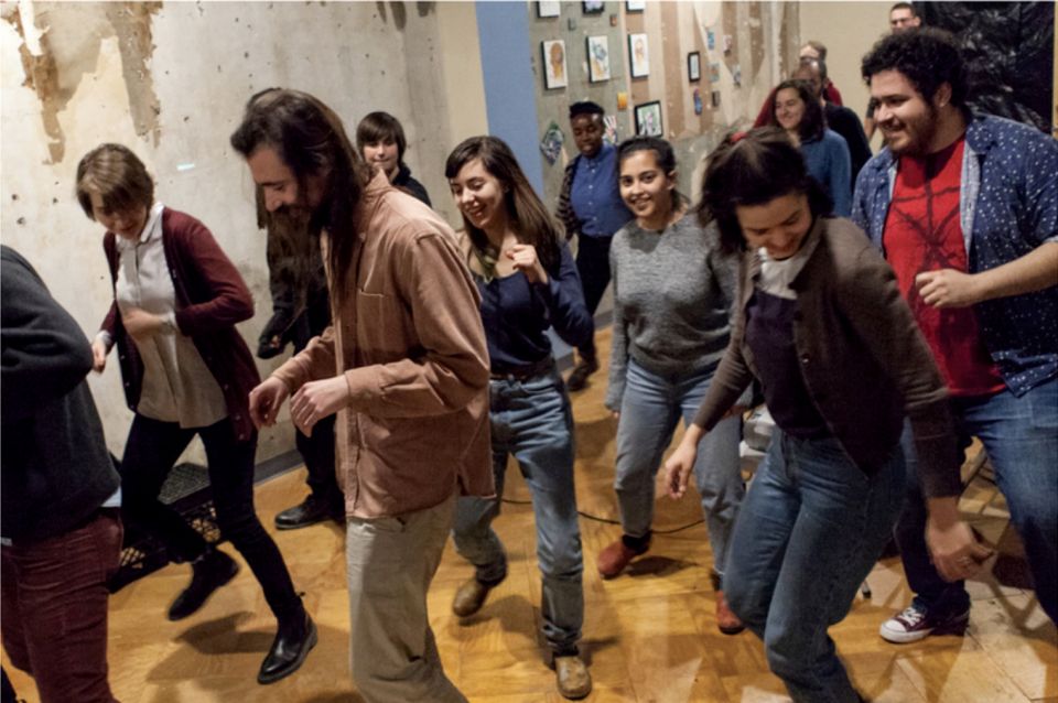 The Electric Boogie Too is a two-hour workshop created by artist/designer Petra Floyd in which participants think through their relationships with social hierarchies and systems of power while learning how to do the Electric Slide. Floyd explores music and dance as social technologies for orienting ourselves in unknowable spaces/times in a joyful experience inviting participants to dance together in PAFA's Rotunda, where Saya Woolfalk's installation, We Emerge at the Sunset of Your Ideology, is on view.