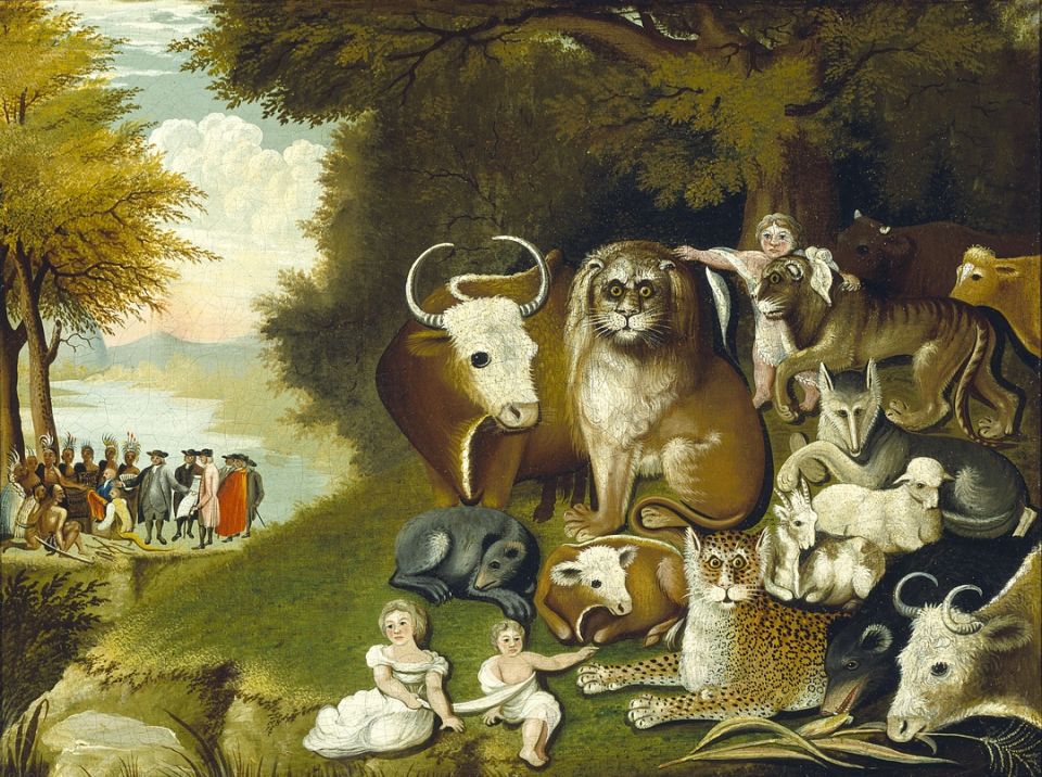 Image: Edward Hicks, Peaceable Kingdom, 1833, Oil on canvas, John S. Phillips bequest, by exchange (acquired from the Philadelphia Museum of Art, originally the 1950 bequest of Lisa Norris Elkins), 1985.17