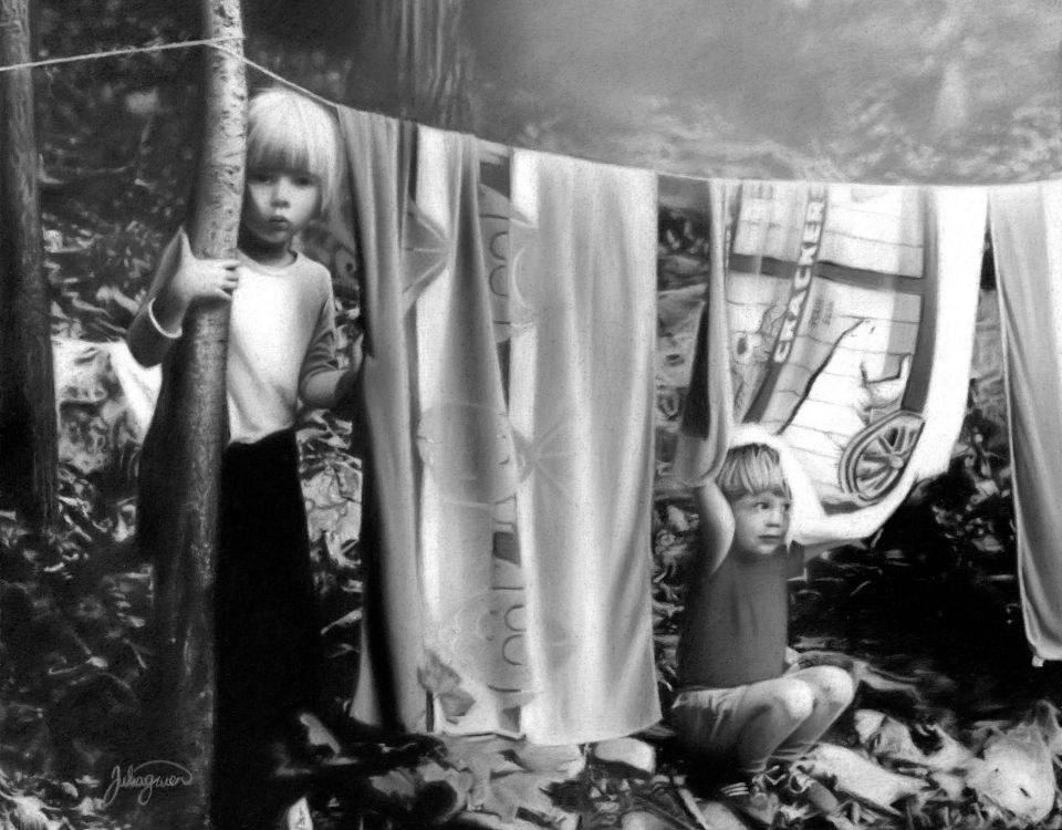 Artwork image: Julia Gwen Poncavage (BFA), "The Hideout", Charcoal, 8 x 10 inches, 2021