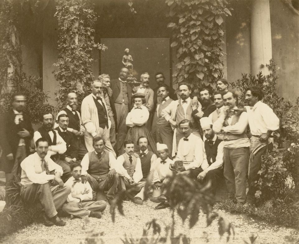 Image: Harriet Goodhue Hosmer with her assistants and carvers in the courtyard of her studio in Rome, 1867. Albumen print, 11 2/5 x 16 1/2 in. (9 x 41.8 cm). Hertzmann Collection of Photographs of American Artists, National Gallery of Art Library, Washington, DC.