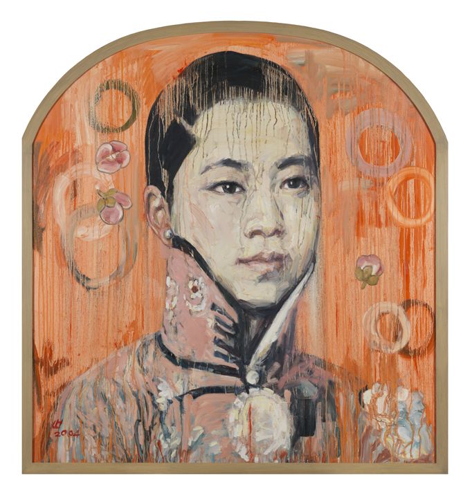 Artwork image information: Visage II, Hung Liu, 2004. Oil on canvas. 51 1/2 x 48 in. Art by Women Collection, Gift of Linda Lee Alter