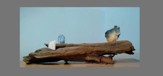 Image: Colleen O'Donnell, Oceanscape, driftwood, shells and plastic straw, 6 x 18 x 6 in.