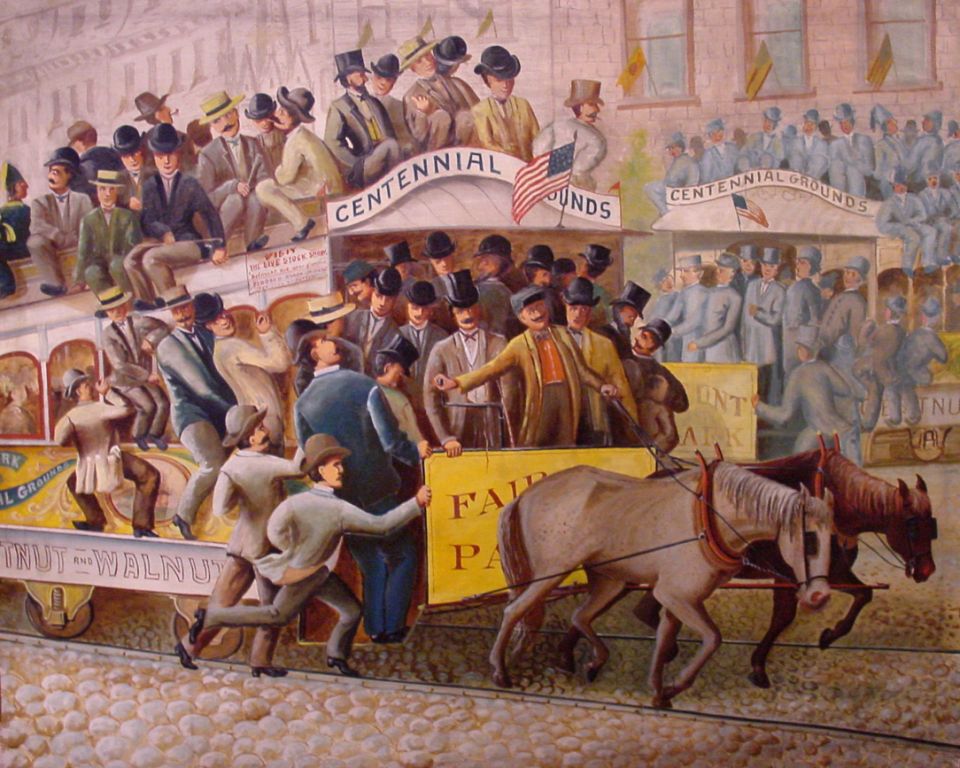 Featured Image: Streetcar Travel in Philadelphia in 1876 by Edwin Haley, 1876. Oil on Canvas. HSP.1919.10. Gift of Albert J. Edmunds, Historical Society of Pennsylvania / Atwater Kent Collection at Drexel.
