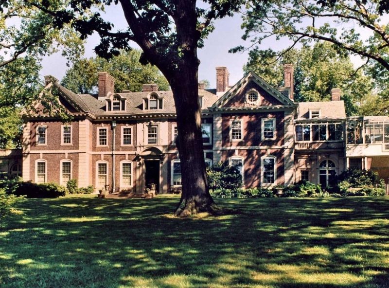 Built by Horace Trumbauer in 1911, the 50-room, 33,000-square-foot Georgian Revival manor home in Villanova has interior decorations by White, Allom & Co. (who worked on Buckingham Palace) and a treasure trove of art by Augustus John, Gilbert Stuart, John Singleton Copley, Thomas Sully, Sir John Lavery, and Charles Willson Peale. It is the last remaining gem of the old Main Line.