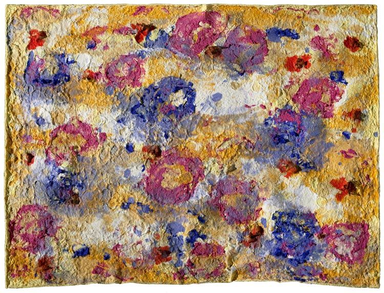 Image: Joan Snyder (American, b. 1940), Large Flower Field, 2011, handmade paper pulp painting with inclusion of natural matter mounted on board, 27 x 35 x 1 inch (sold framed), edition of 16. Published by the Brodsky Center at PAFA, Philadelphia. Photo courtesy of the artist and the Brodsky Center at PAFA, Philadelphia, copyright the artist and the Brodsky Center at PAFA, Philadelphia. Photo by Peter Jacobs
