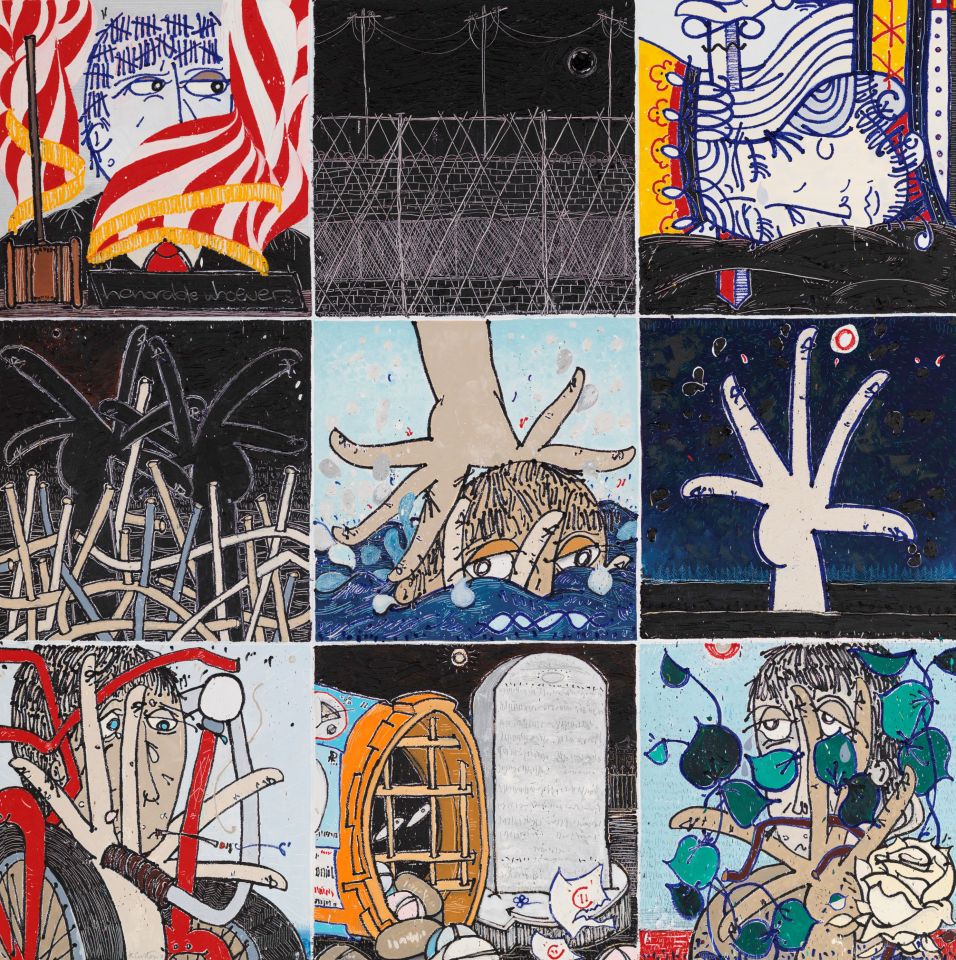 Image: Timothy Curtis, If I Had Your Hand I'd Cut Mine Off, Oil, oil stick, wax pastel, graphite on canvas, 72 x 72 inches.