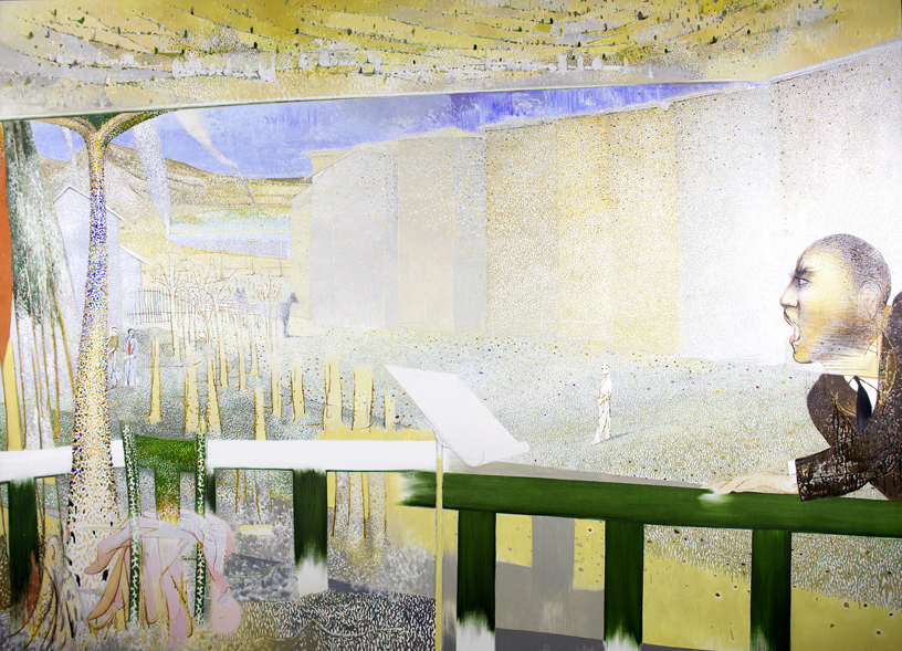 "The Disappeared' is from a series of images that confront the atrocities of Argentina's oppressive military regime of the 1970s and early 1980s, a period of terror when thousands of citizens "disappeared." Petlin created a painting that is filled with foreboding imagery, from the traces of a horse and carriage that appear in the ghostly forest on the left side to the screaming figure who occupies the right foreground. In its Pointillist styling, this work also reveals Petlin's interest in another politically conscious artist, the nineteenth-century anarchist Georges Seurat.
