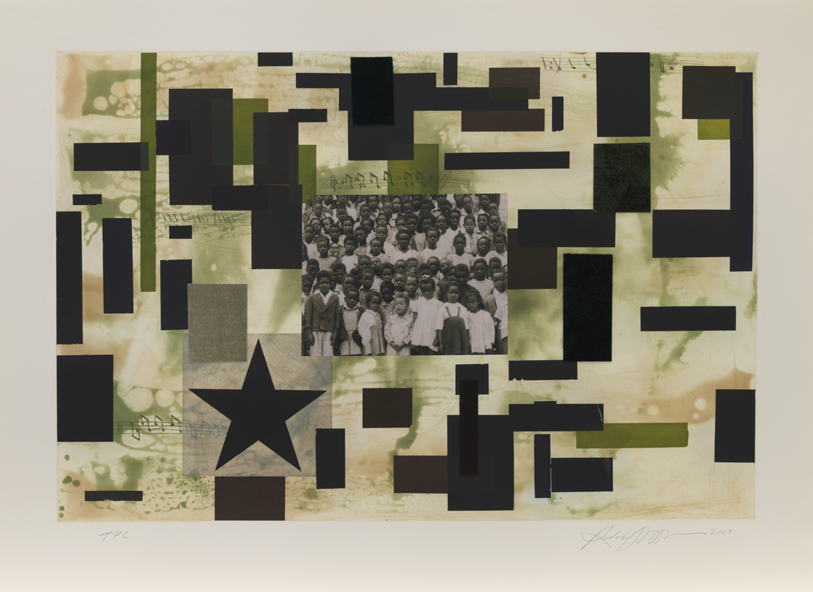 Color aquatint with color photocopy, chine collé and velvet, ed. TPC