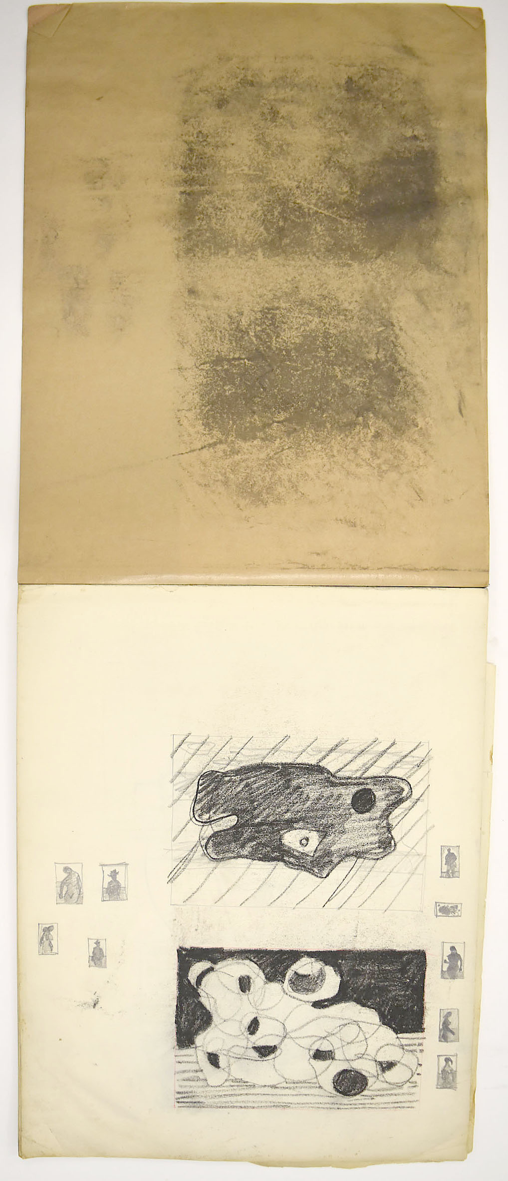 Graphite, conté crayon/charcoal, ink and watercolor on paper; 50 pages, 18 with images, 1 loose sketch