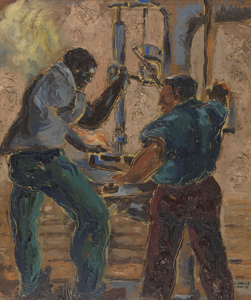 Men and Drill Press