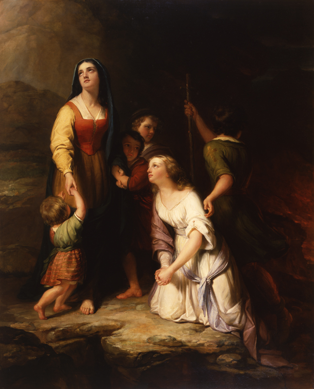 "Mercy's Dream" was the first great success of Daniel Huntington's career. In its large scale, the painting utilized the vocabulary of the old masters that Huntington had seen while studying in Europe. The sweetness of the figure of Mercy is reminiscent of a Raphael Madonna, while the elegant curve of the angel's body and upraised hand recall the 'figura serpentinata' of Michelangelo. The subject matter, however, was one that held strong appeal for an American audience: John Bunyan's "The Pilgrim's Progress," the epic religious allegory of the seventeenth century that was the best-selling book in the United States in the eighteenth and early nineteenth centuries, after the Bible.