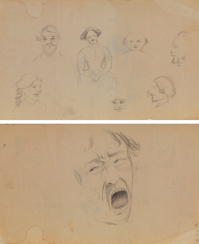 Studies of Head; verso: Man Screaming