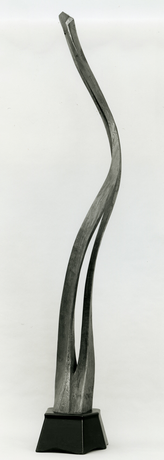 The sculpture was carved outside his studio in Paoli. First, he sketched directly on the wood with chalk attached to a long stick. Then, chopping with an ax, he emphasized the natural twist that was present in the log. The sculpture was left on display outdoors probably for as long as eighteen years. It was brought inside for a retrospective of the artist in 1958. The Academy purchased it in 1968. "Twin Twist" has been on long term loan to the Warton Esherick Museum since 1975.