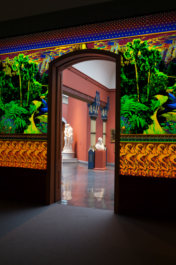 Wallpaper - fluorescent ink and rayon flock on Tyvek