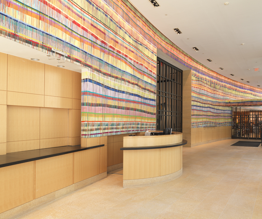 THERIDENEVERENDS, a site-specific installation by the artist Marcus Linnenbrink, adorns the curved wall of the Samuel M.V. Hamilton Building lobby. It spans 118 feet, and was installed by the artist with the assistance of three PAFA students in June 2014.