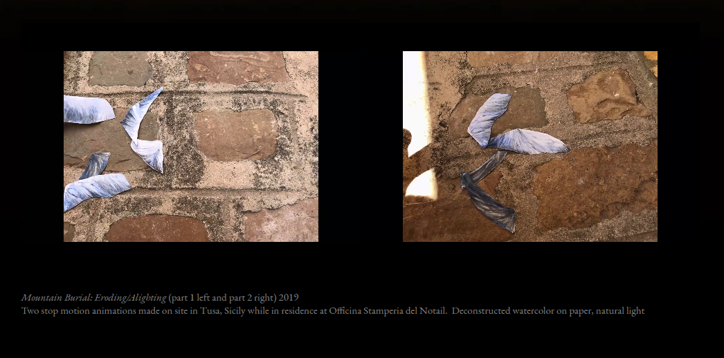 Maisie O’Brien '16 is a local, multidisciplinary artist whose work constructs composite mythologies that are both personal and universal. O’Brien’s recent stop motion animations are tactfully rhythmic and offbeat in both the mechanics of their literal movement and also their evocative imagery. These animations synthesize sensitive mixed-media collages that showcase O’Brien’s skills in materials such as oil paint, watercolor, ink, and chalk, and shadow puppets that are also on view. The resulting sequences—while making oblique and cheeky references to pre-existing historical narratives, creation stories, and intercultural mythologies—are illustrative but elude simple explanation. One is persuaded to enter the logic of the animations whose uniquely symbolic imagery and lack of obvious narrative create poetic spaces to further imagine O’Brien’s mythologies.