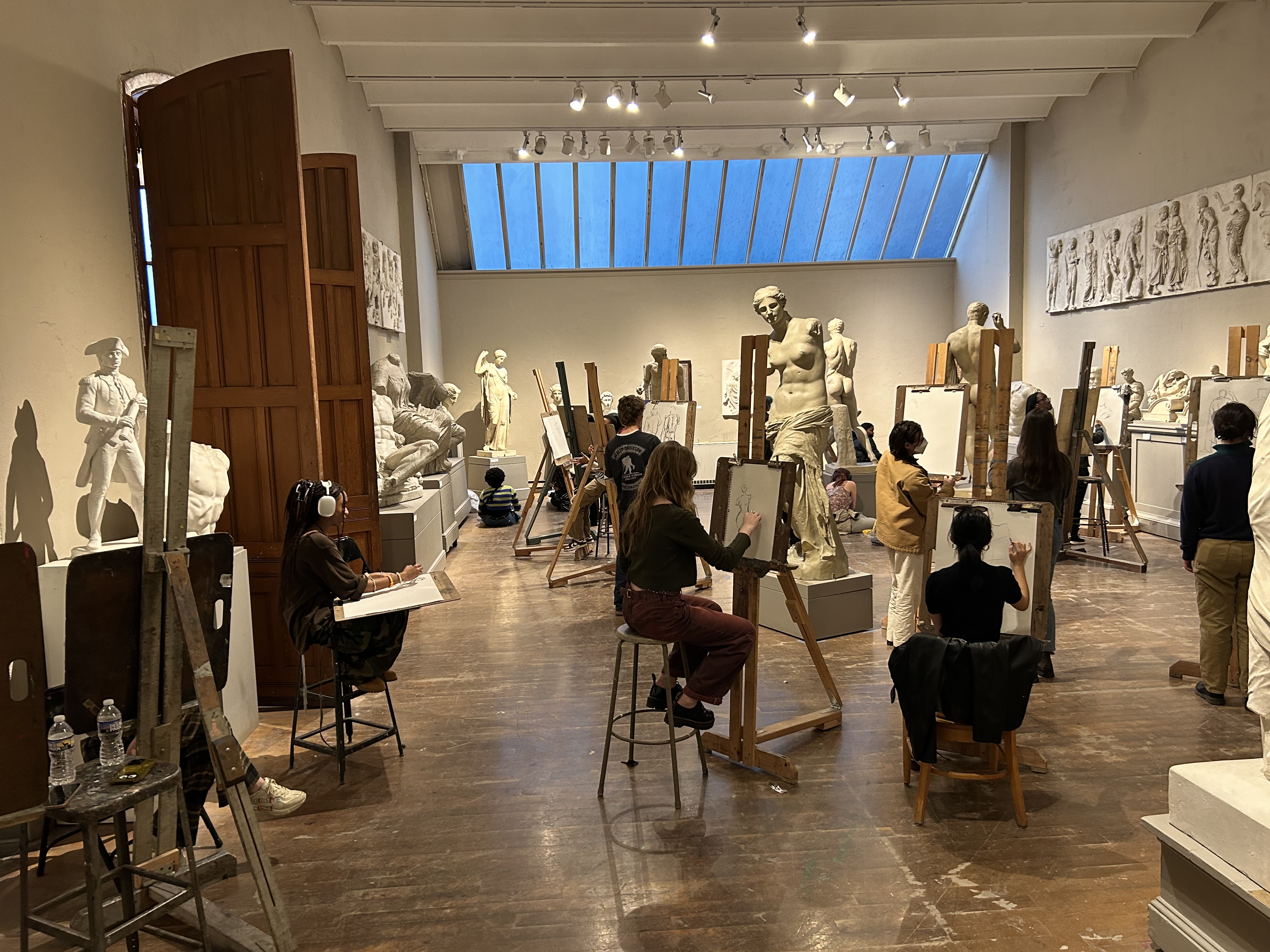 Students sketch casts in the Cast Hall of the Historic Landmark Building.