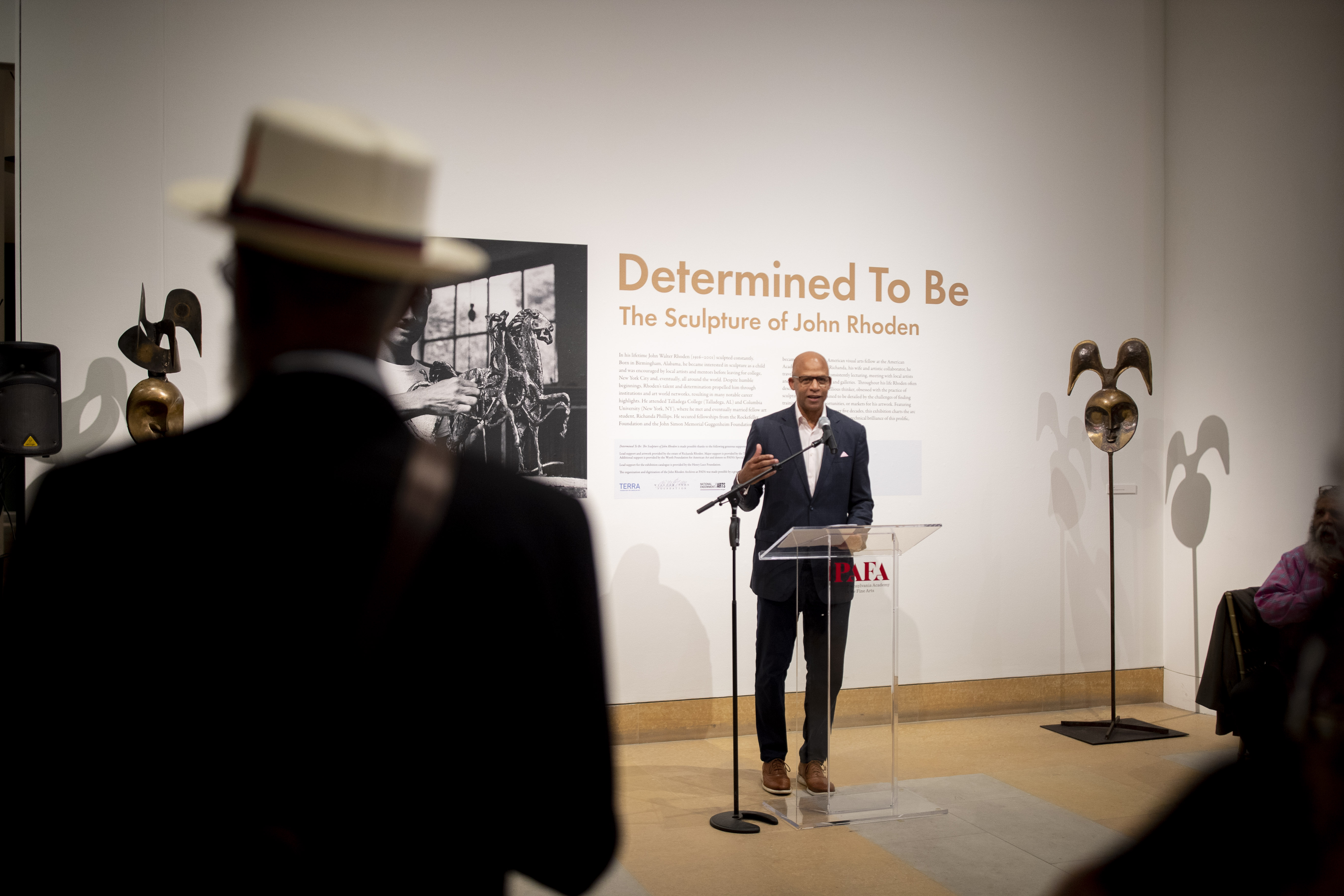 Eric speaking at the 'Determined to Be: The Sculpture of John Rhoden' Exhibition Opening Celebration, October 5, 2023. Photography by Ryan Brandenberg.