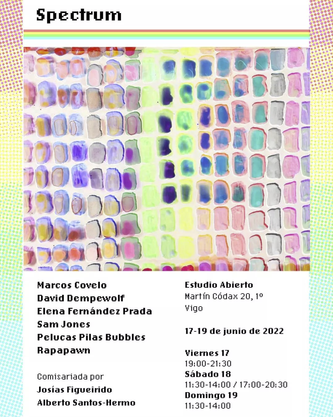 David Dempewolf shows at the Estudio Abierto in Vigo, Spain this summer. The exhibition Spectrum from June 17-19 is curated by Josías Figueirido and Alberto ASH Santos. Read the Spanish preview in La Voz de Galicia by Begoña Rodríguez Sotelino, "La mítica consola «Spectrum» inspira a seis artistas norteamericanos y españoles entorno a la cultura digital."