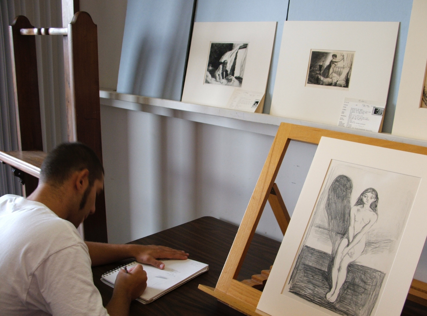 PAFA students enrolled on the Print Study Seminar taught by PAFA Printmaking Professor Anthony (Tony) Rosati, learning directly from historical prints in the collection of the Philadelphia Museum of Art, in the Print Study Room of the museum’s Department of Prints, Drawings, and Photographs.