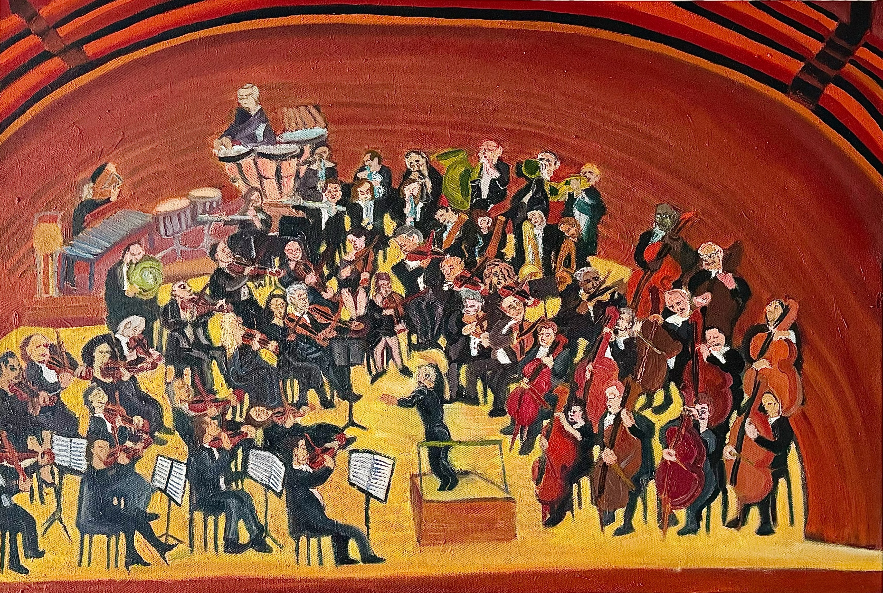 ![]() Chuck Schultz, Kimmel Center Usher, headshot, photo credit: Edward Savaria Jr. | ![]() PhilaOrchestra, 31"x 46", oil on canvas, 2020 |