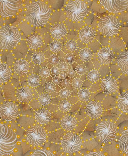 Barbara Takenaga is an acclaimed American artist recognized for her mesmerizing abstract paintings characterized by swirling motifs, psychedelic and cosmic landscapes that also exhibit a scientific quality attributed to their meticulously detailed and intricately patterned compositions.