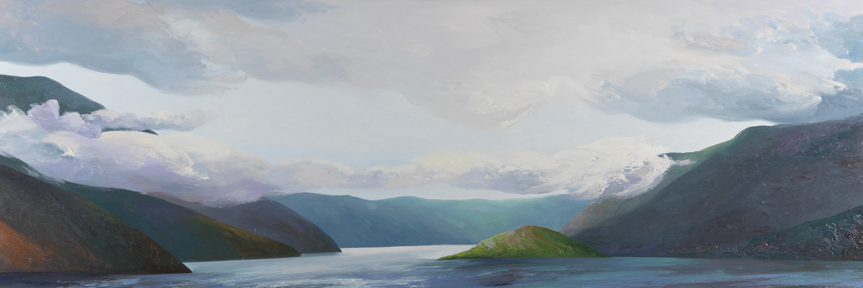 Diane Burko, "Morning Clouds - Villa Window," 1994. Oil on canvas, 24 x 72 in. (60.96 x 182.88 cm.). Art by Women Collection, Gift of Linda Lee Alter © Diane Burko / Artists Rights Society (ARS), New York, 2011.1.70.
