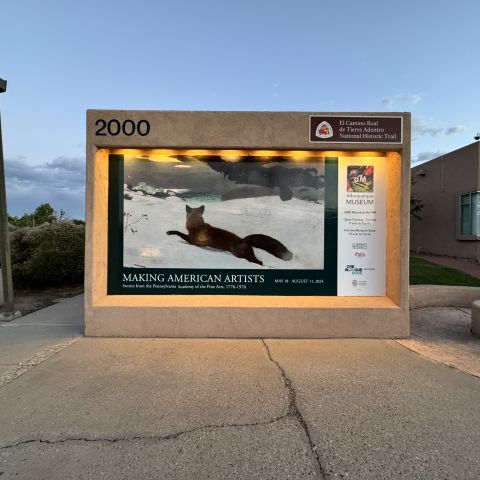 sign for Making American Artists that feature Winslow Homer's Fox Hunt.