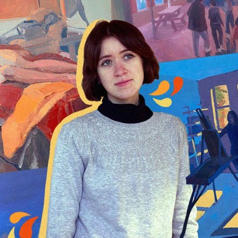 Shiva Ahmadi - Red Light, 2020, Acrylic on canvas, 56 x 72 in. Commissioned by PAFA for Rising Sun: Artists in an Uncertain America, courtesy Haines Gallery, San Francisco