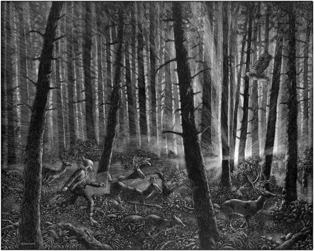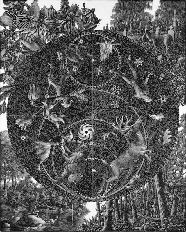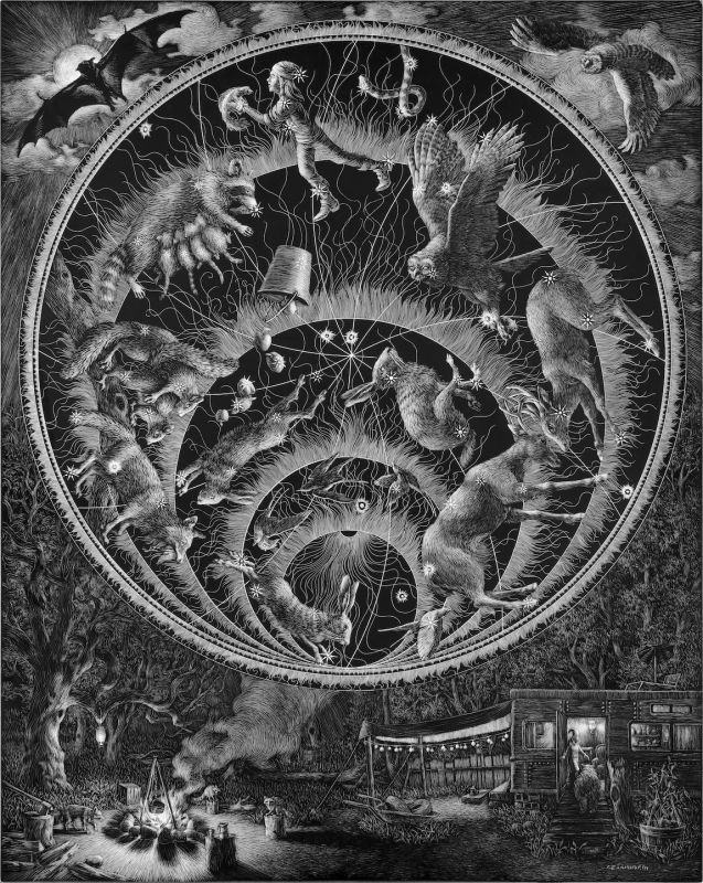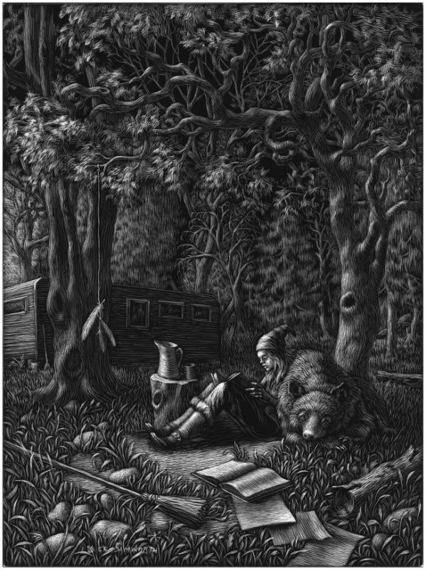 Kate Samworth is an artist and award winning illustrator of several books, including Aviary Wonders Inc., and Why Fish Don't Exist. Her work explores the spiritual questions raised by observing nature and addresses the existential anxieties expressed in folklore and fairy tales. She creates highly detailed images of imaginary places in various media, including scratchboard engraving and oil painting. She has exhibited across the country and abroad and is represented by Le Mieux Gallery in New Orleans, LA and RJD Gallery in Romeo, MI. Her work has been published in several magazines, including Orion, High Country News, and Illustoria. Samworth earned a BFA from PAFA. She teaches drawing, water-media, and illustration through the department of Continuing Education.